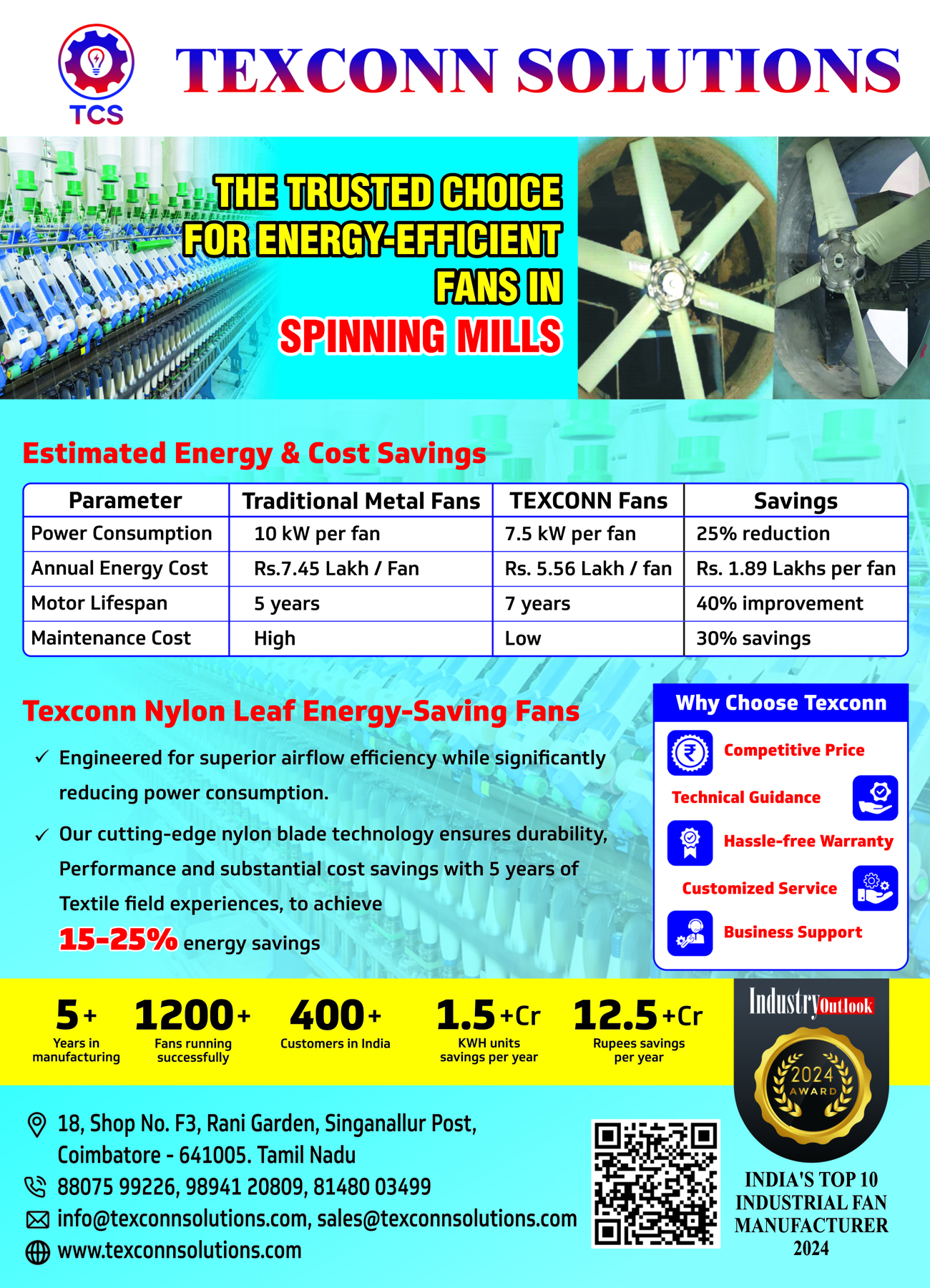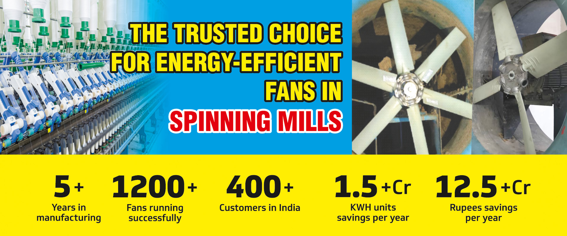Our advanced fans and energy-efficient systems consistently reduce power consumption and operational costs for textile industries.